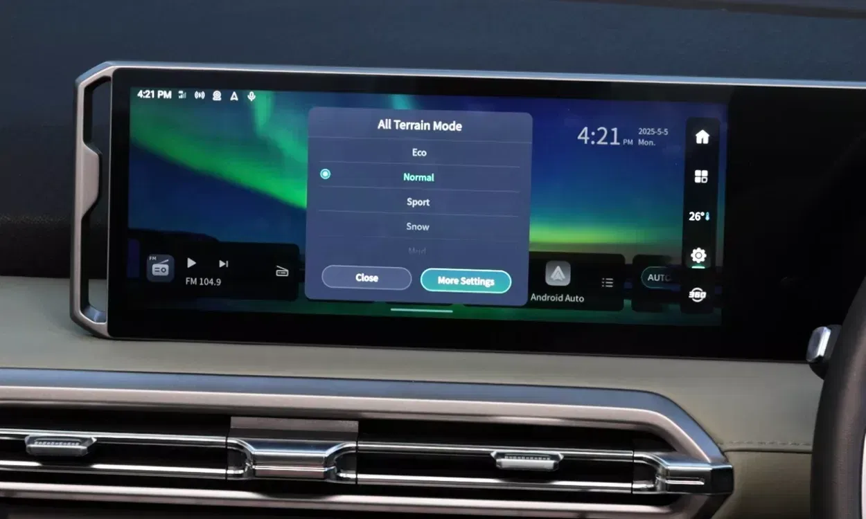 There's a mode to suit your drive with Mud, Snow, Sand and Tow modes plus a custom mode.
