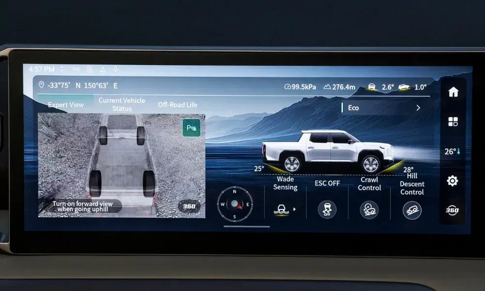 A dedicated Offroad Expert view with 360° camera plus shortcuts to Crawl Control and Wade Sensing Mode means you'll never have to wing it.