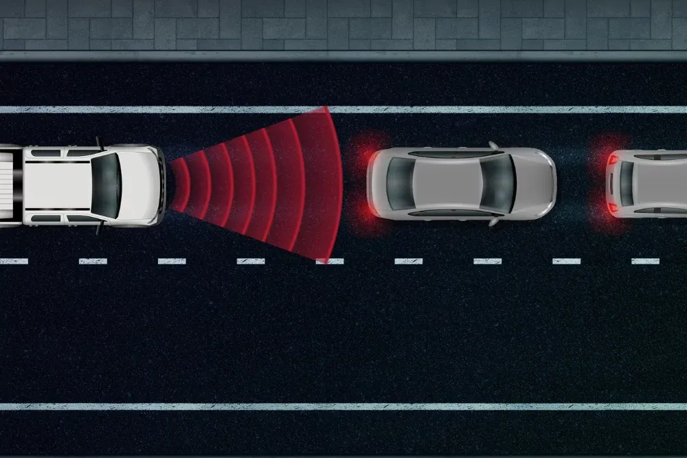 Adaptive Cruise Control uses radars to help your vehicle maintain the same speed as the vehicle in front of you, automatically slowing down and speeding up.